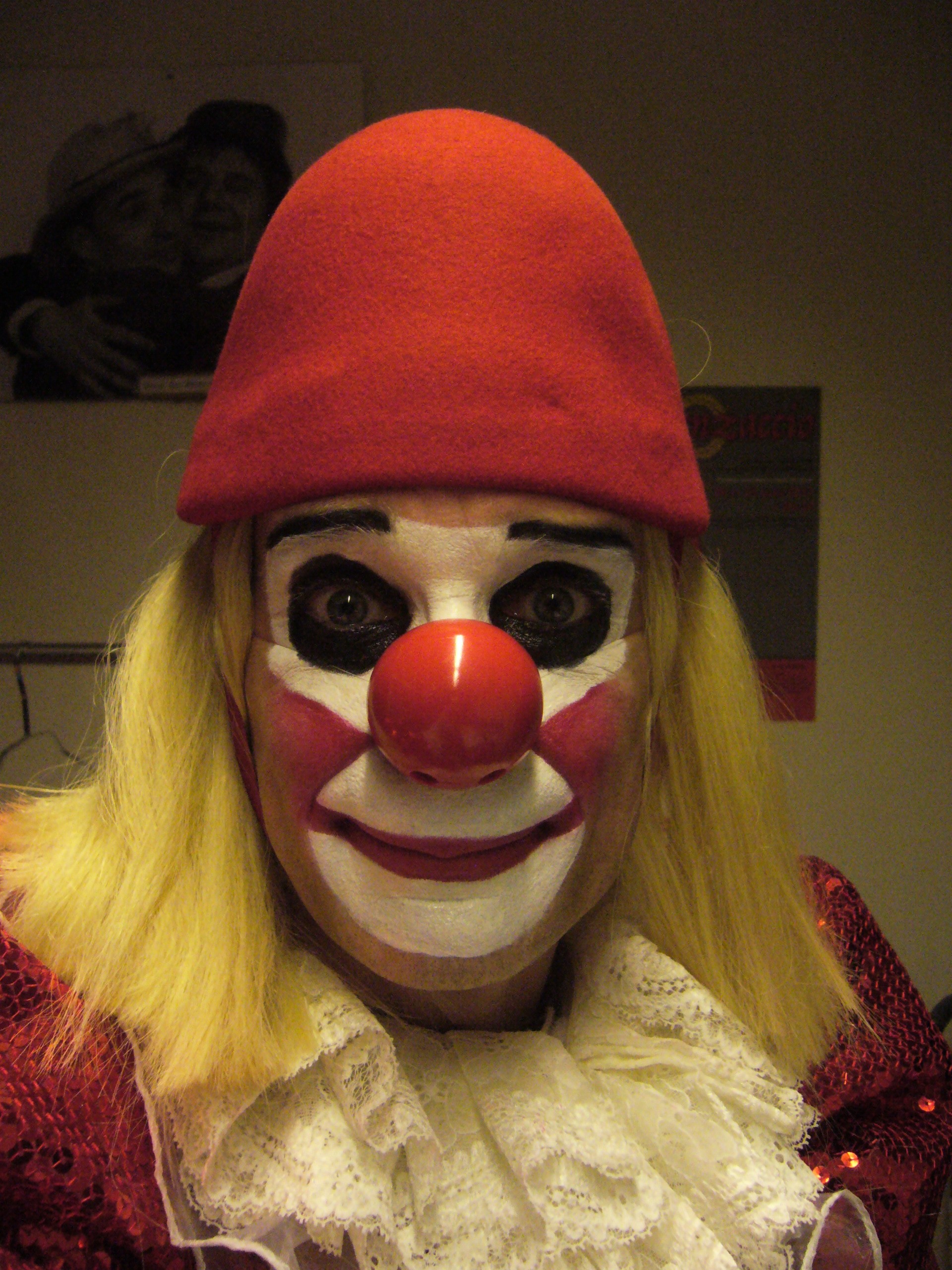 En loge, Philippe Pillavoine sous le maquillage du clown Laurent avant la représentations de « Laurenzaccio » le 24 mars 2017 au Théâtre de Chaoué Port Belle Eau à Allonnes (72).